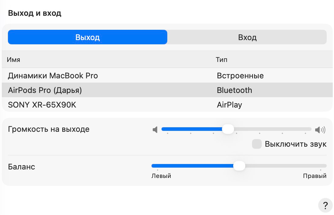 - Убедитесь, что выбрано правильное устройство (встроенные динамики или наушники).
